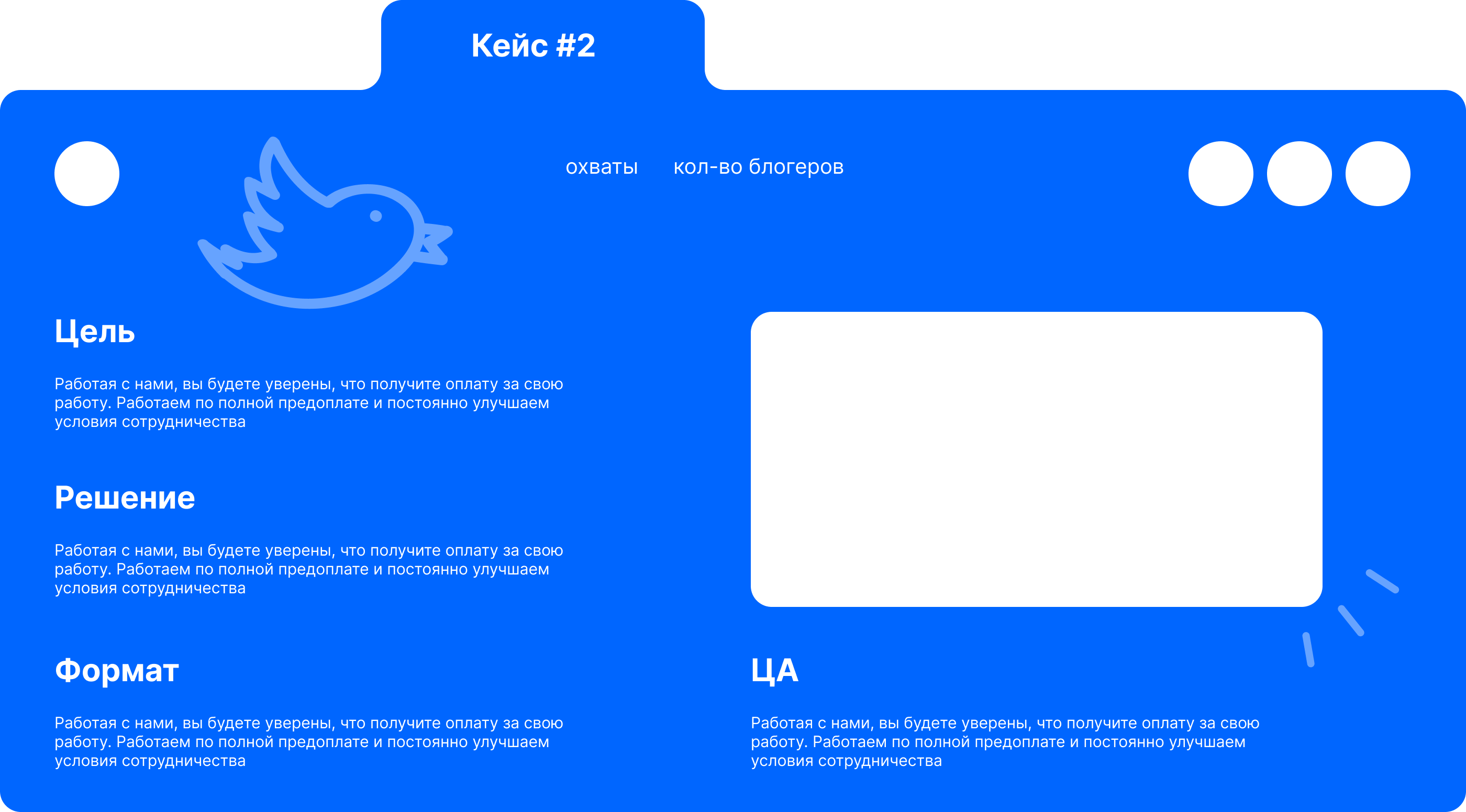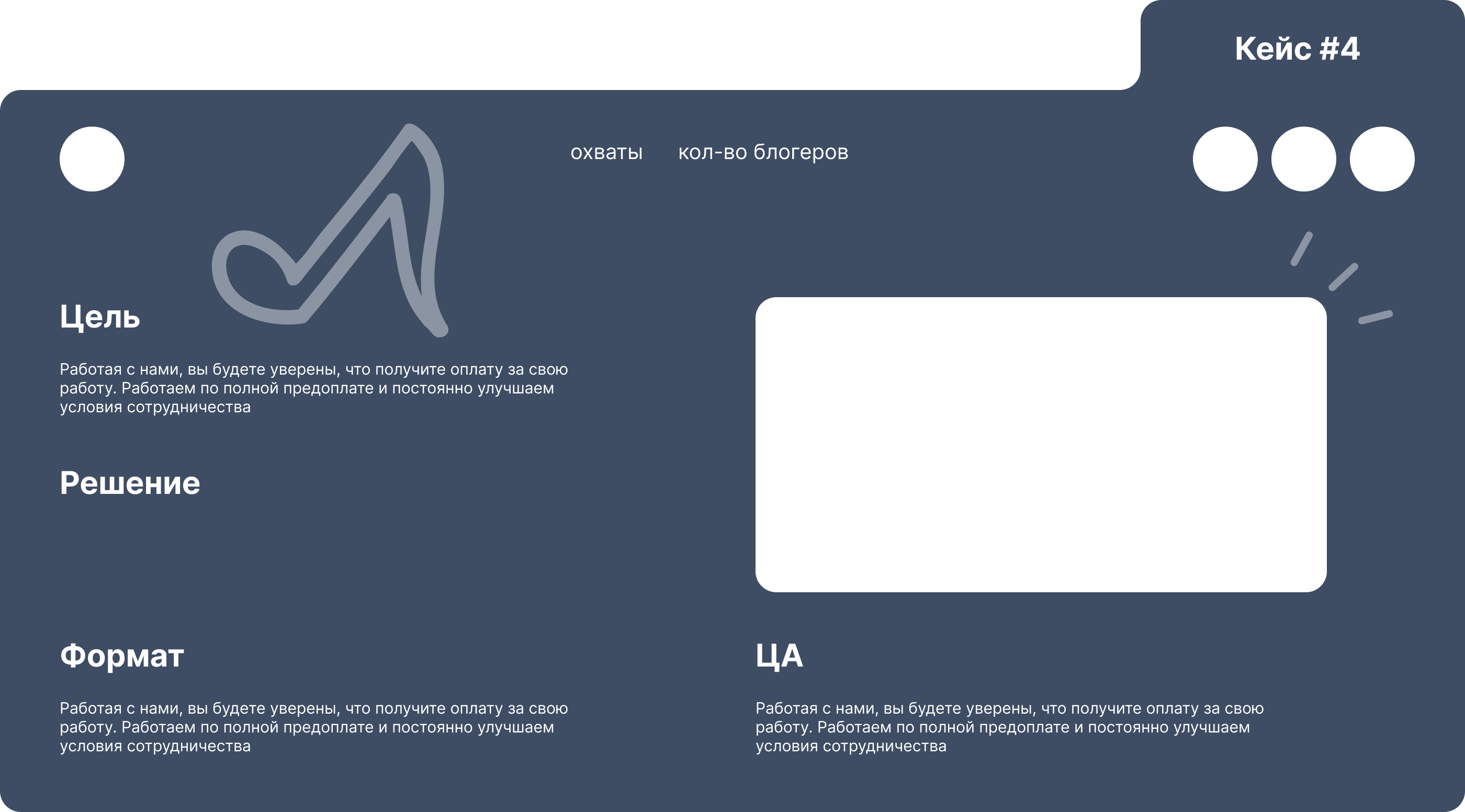 Прямой контакт с инфлюенсерами, позволяет нам: получать лучшие цены, ускорять запуск рекламных компаний и избегать недопониманий между клиентом и исполнителем. А также помогаем найти амбассадоров вашего бренда.